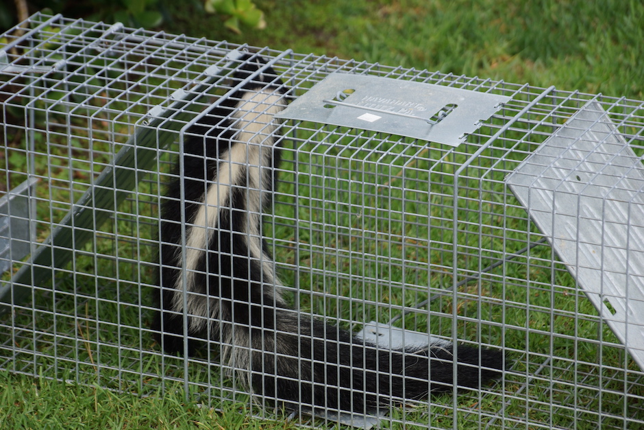Perhaps the best way to get rid of them is to use live traps. There are traps specifically designed for squirrels that will protect you from their obnoxious spray. Nonetheless, you may still opt for the conventional type of live traps. Skunks have poor eyesight; you will have to rely on the bait to encourage them to enter the trap. Placement of the trap is also extremely important. Be sure to place it close to their den or along their path.